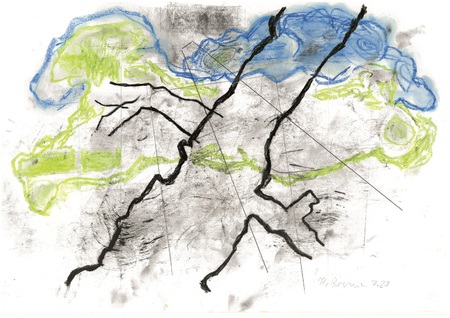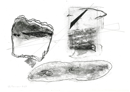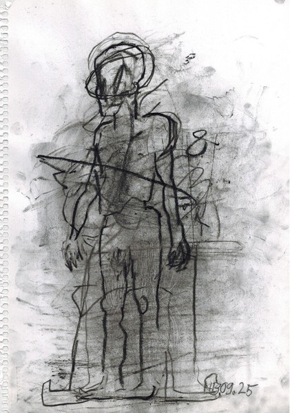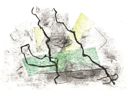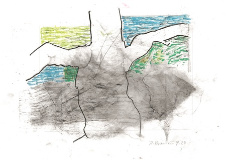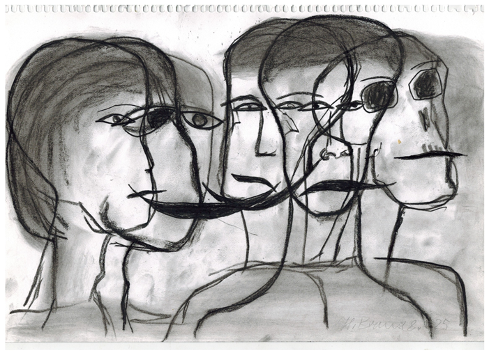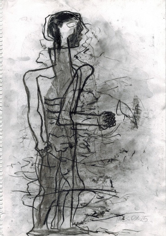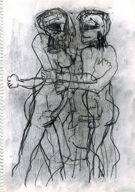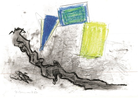 Kohle, Bleistift, u .z.T. Ölkreide auf Papier,